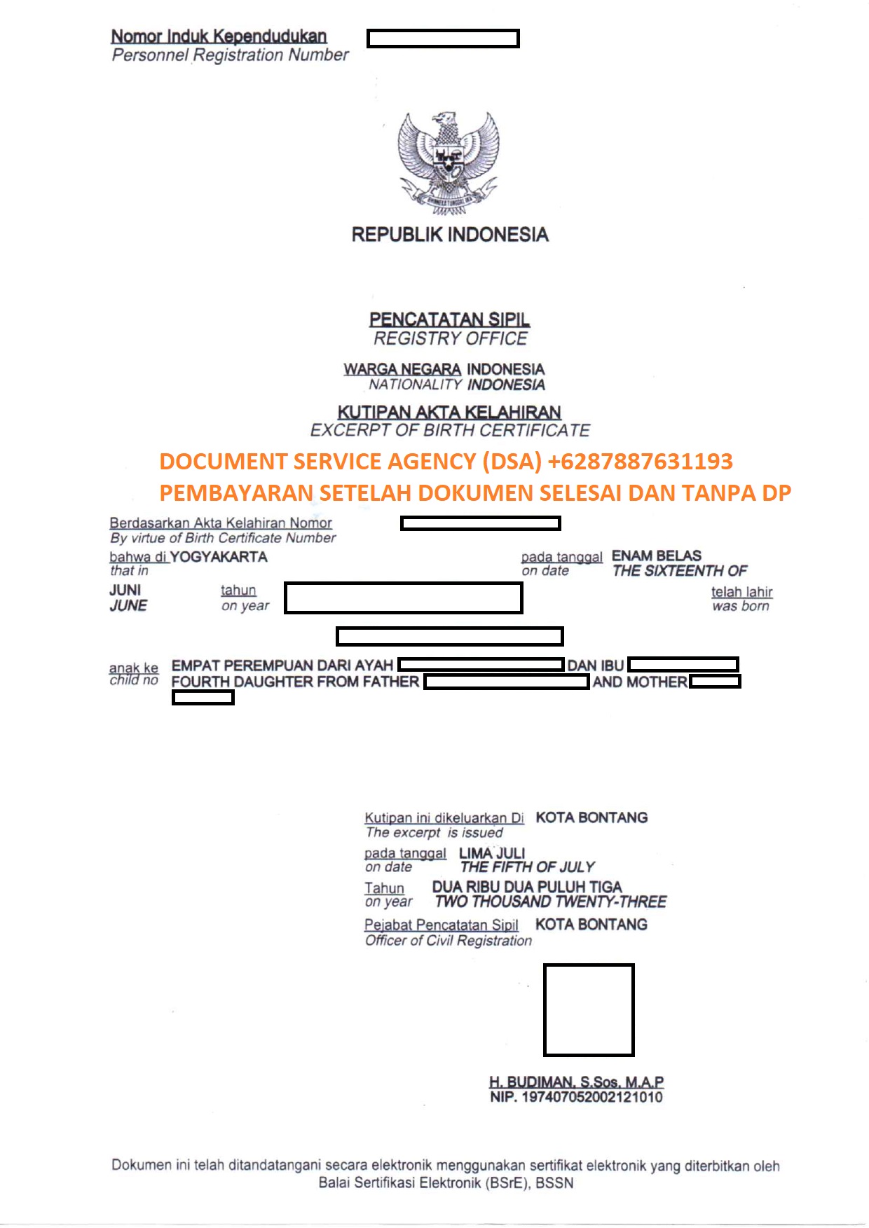 Telp/ Whatsapp : 021 48671259/ +62 878 8763 1193 atau email : documentsserviceagency@gmail.com